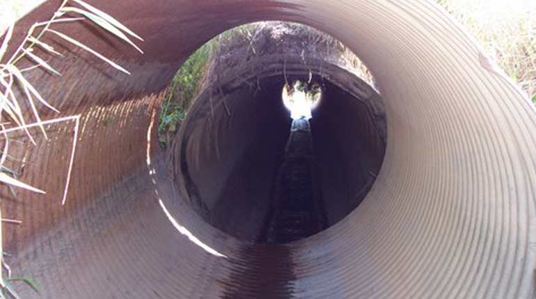 The drop inlet of 36R had rusted out in several places, greatly reducing the ability of the pipe to function as designed.