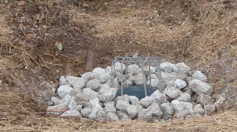 Structure 88R is an 80 foot long 48-inch CMP culvert which was rusted and collapsing - requiring complete replacement of the pipe and riprap.