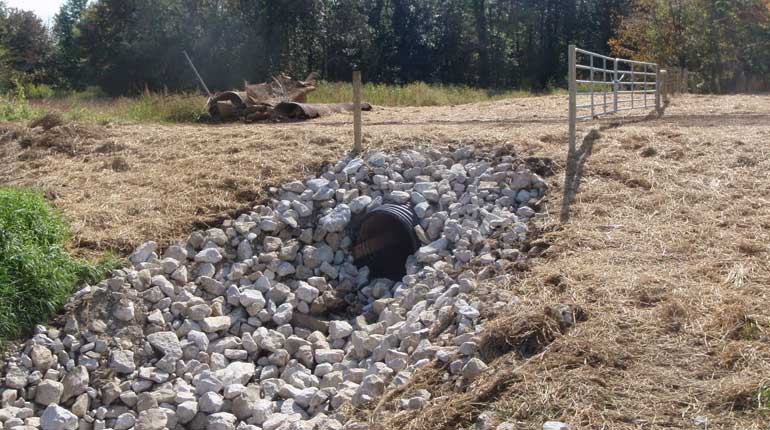 Structure 88R is an 80 foot long 48-inch CMP culvert which was rusted and collapsing - requiring complete replacement of the pipe and riprap.