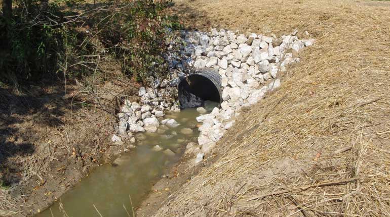 Structure 88R is an 80 foot long 48-inch CMP culvert which was rusted and collapsing - requiring complete replacement of the pipe and riprap. This pipe provides an important link to the access lane along Chippewa Creek enabling the landowner and Subdistrict staff access to the channel and adjacent land.