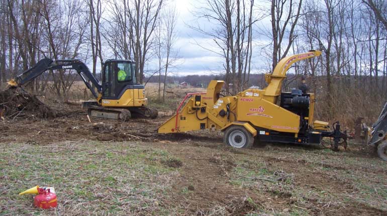 Not all of the access berm areas are located in wooded or rural areas. Some properties are a residential and require more careful restoration after maintenance...