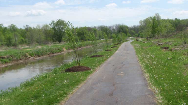 The top of the dam access lane and trail at Hubbard Valley Park was replaced with a durable limestone surface.
