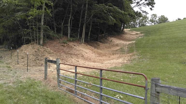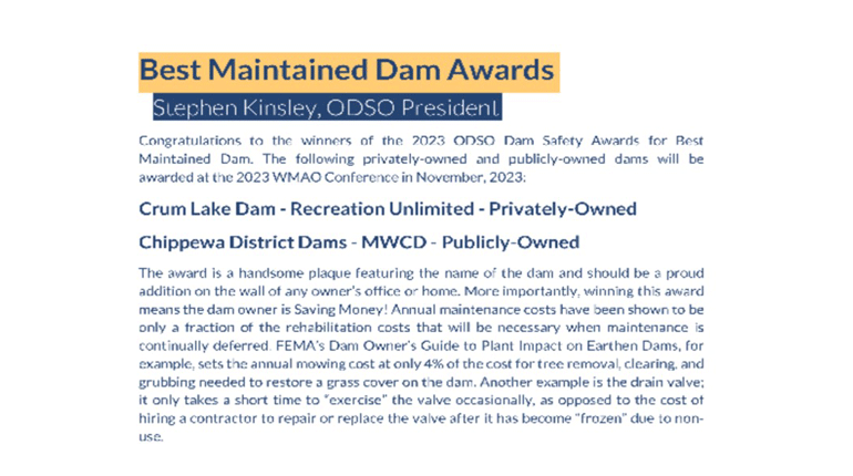 After rain events debris collects on the trash racks located on the inlets of the spillways. As part of dam maintenance, the debris is removed, dam area mowed to allow closer inspection of soil and structural stability.